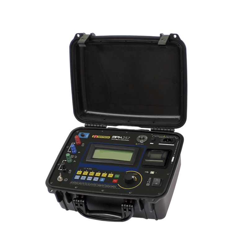 The MPK-257 digital very low resistance ohmmeter is a portable, microprocessor-controlled instrument used to accurately measure resistances of switches and circuit breaker contacts, transformer and motor windings, wire and cable samples, joints in busbars, etc., using test currents from 1mA up to 10 A.